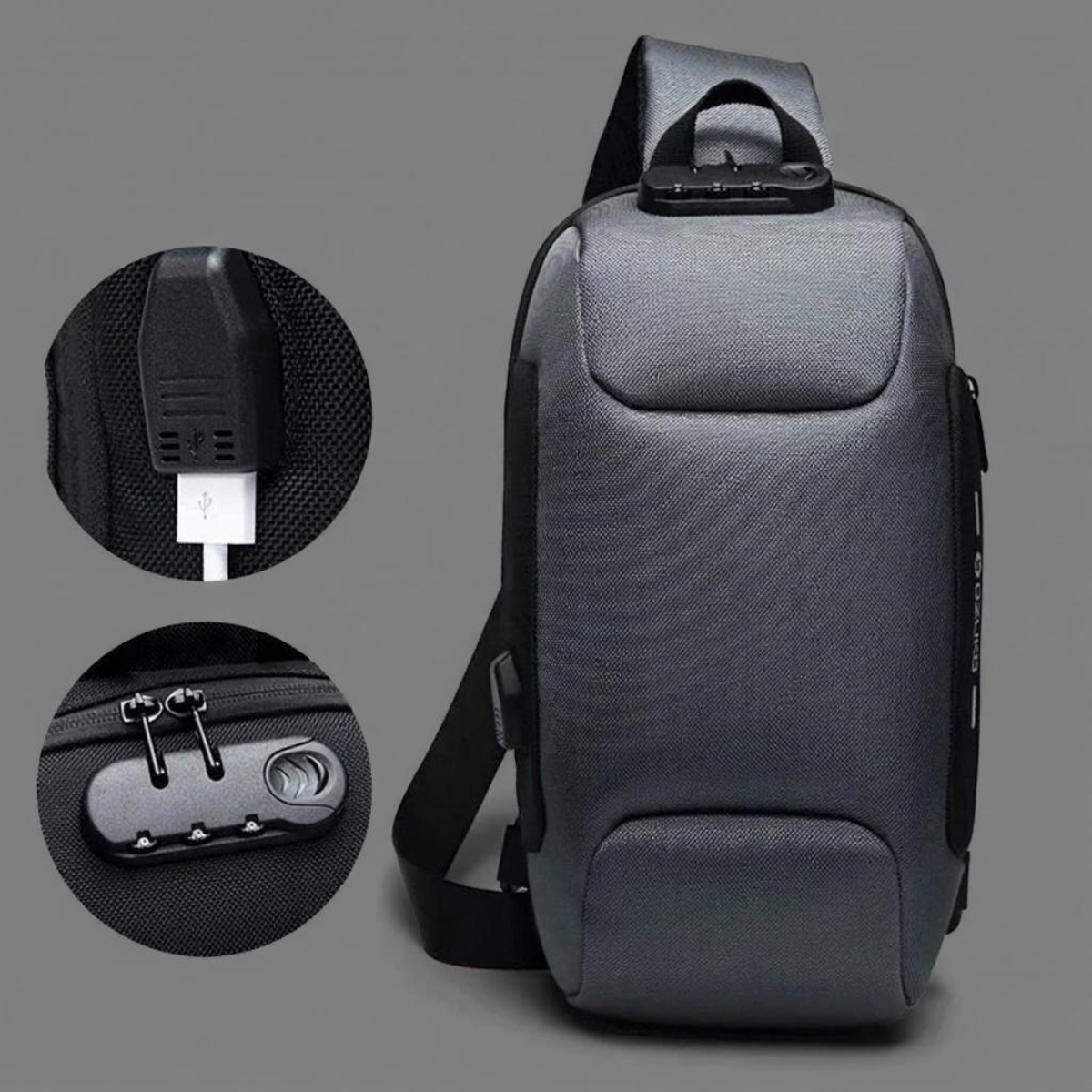 Deze slimme tas is ontworpen om dieven en zakkenrollers te slim af te zijn. Dankzij het snijbestendige draagkoord, een vergrendelbaar hoofdvak met cijfercode en geavanceerde RFID-bescherming, blijven jouw eigendommen veilig. En met de ingebouwde USB-oplaadpoort blijf je ook onderweg altijd verbonden.