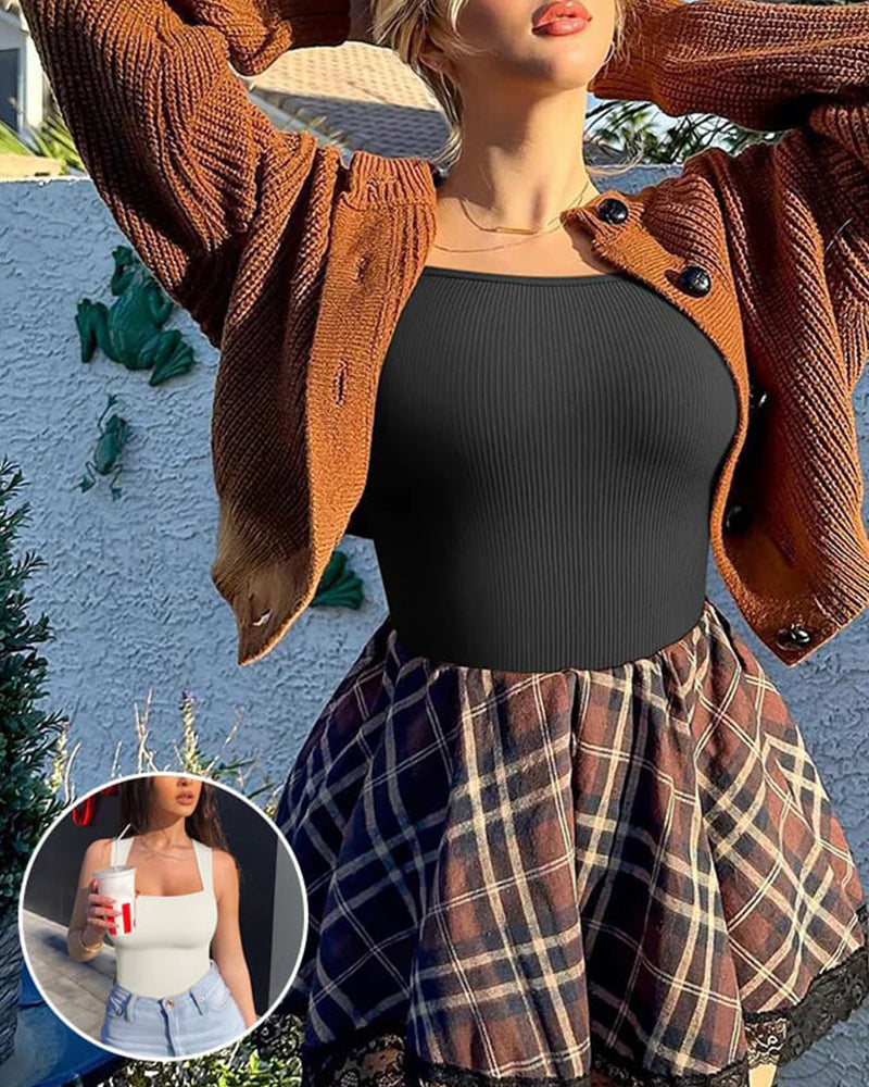 Sexy tanktop-body's, flatterende vierkante halslijn met taps toelopende schouderbandjes, eenvoudig ontwerp, niet doorschijnend, het beste voor dames, dames en tienermeisjeskleding.