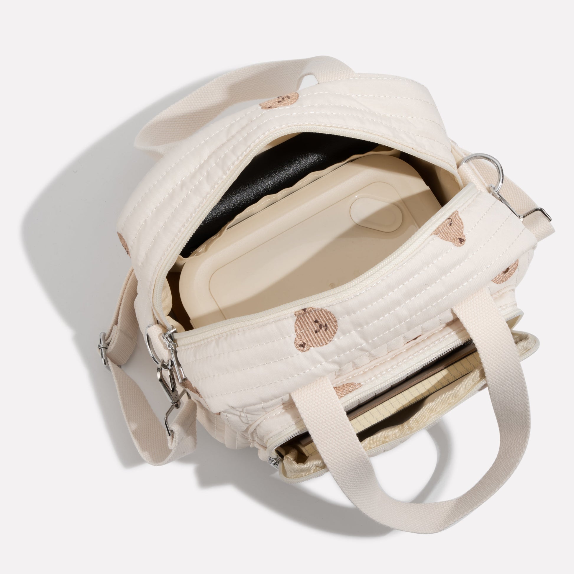 Veelzijdigheid ontmoet stijl met verstelbare banden en ingebouwde handvatten. Draag hem handsfree of handmatig, afhankelijk van je situatie. Het schattige, gewatteerde ontwerp biedt niet alleen extra bescherming, maar is ook een echte blikvanger!