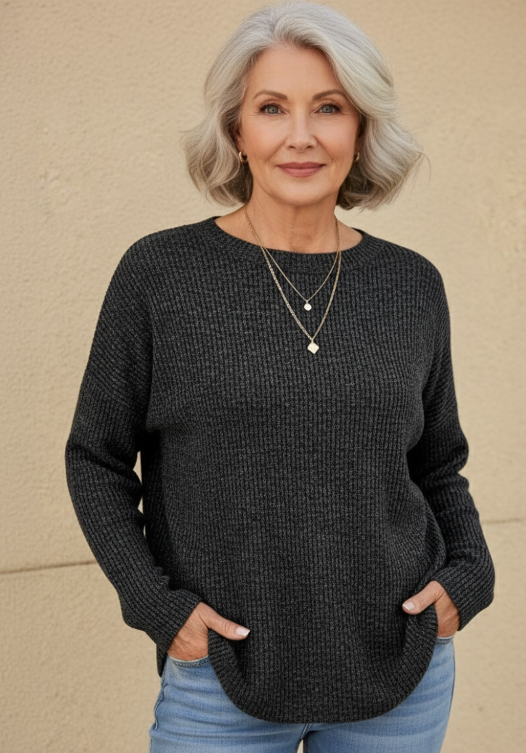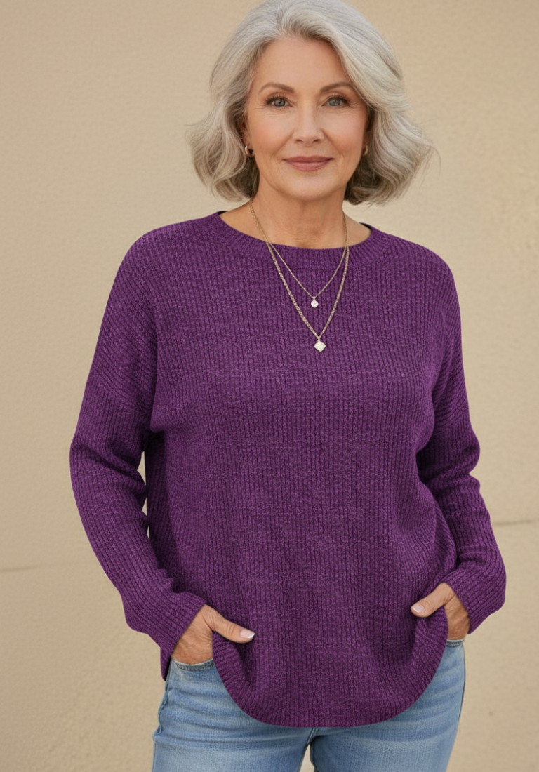 Zachte en ademende gebreide top met losse pasvorm, losse stijl voor alle lichaamstypes, geweldige draagervaring.