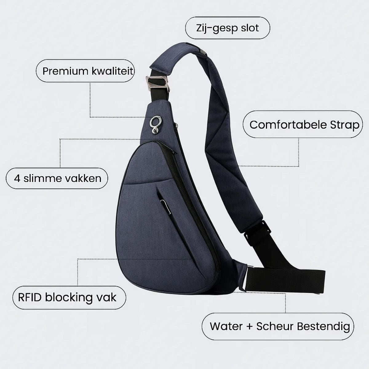 • Antidiefstal Bescherming: Verborgen ritsen, RFID-blokkering en snijvaste riemen om je waardevolle spullen veilig te houden.