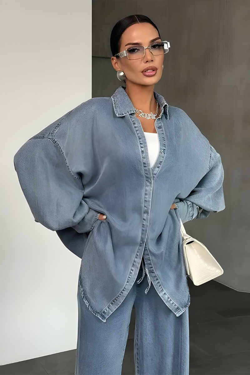 Voel je zelfverzekerd en stijlvol – draag de Ines™ | Moderne lounge set met wijde broek vandaag nog.