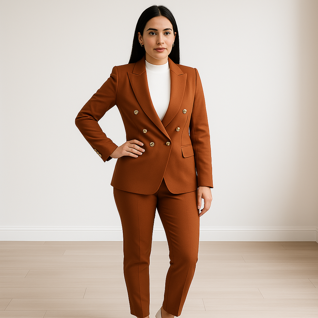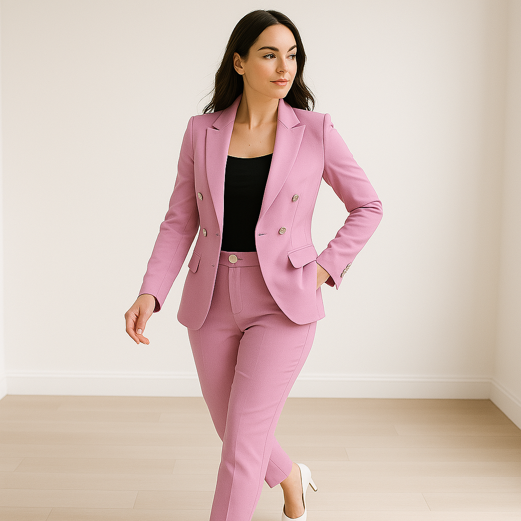 • Getailleerde blazer met dubbele rij knopen en bijpassende tapered broek