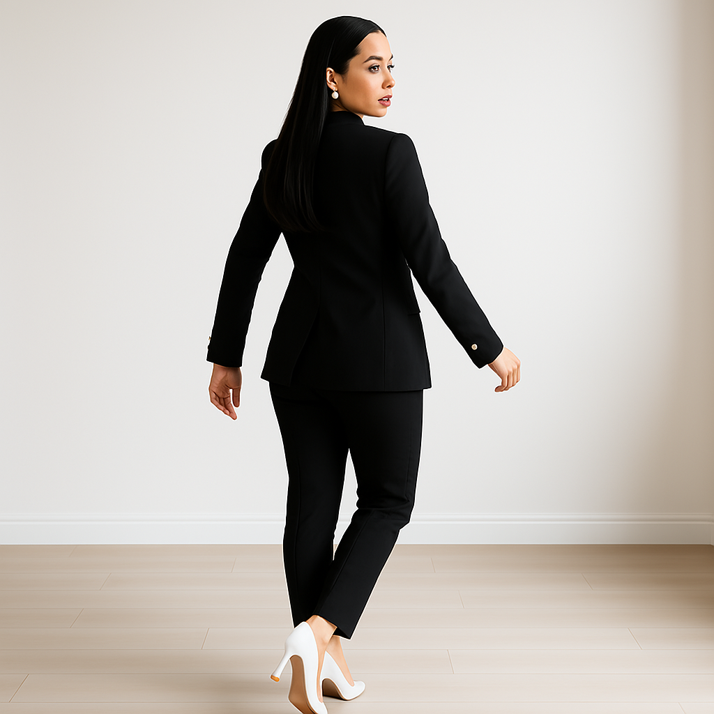 • Tijdloos two-piece design met gouden details voor een krachtige uitstraling